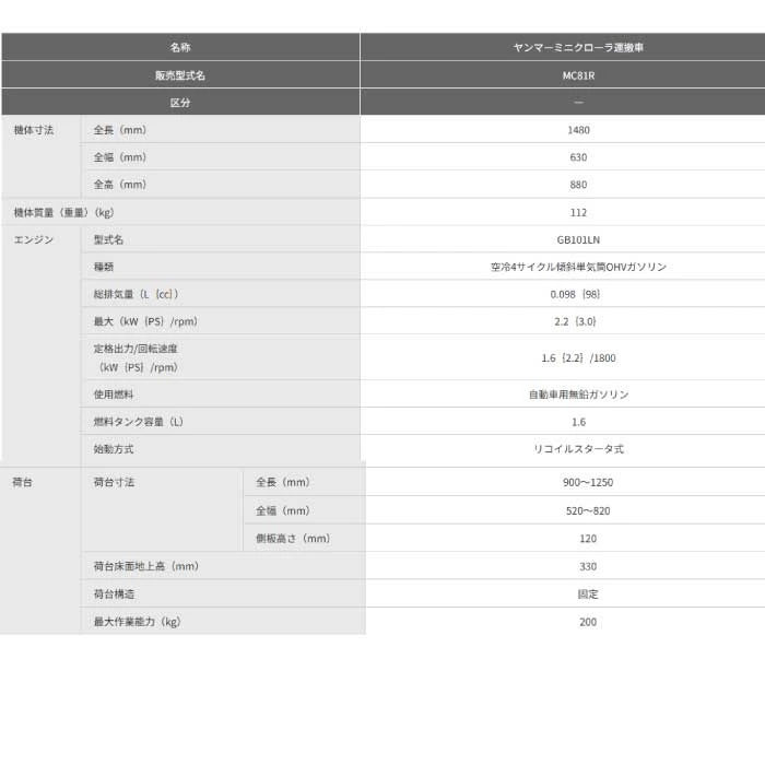 ヤンマー 運搬車 MC81R