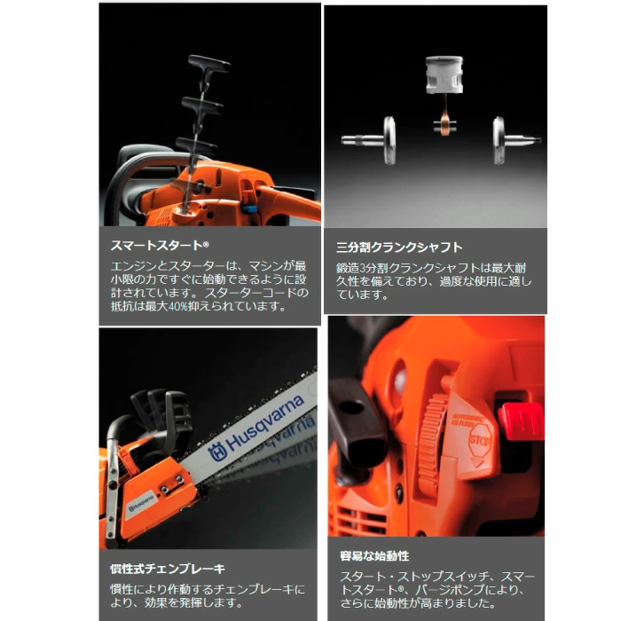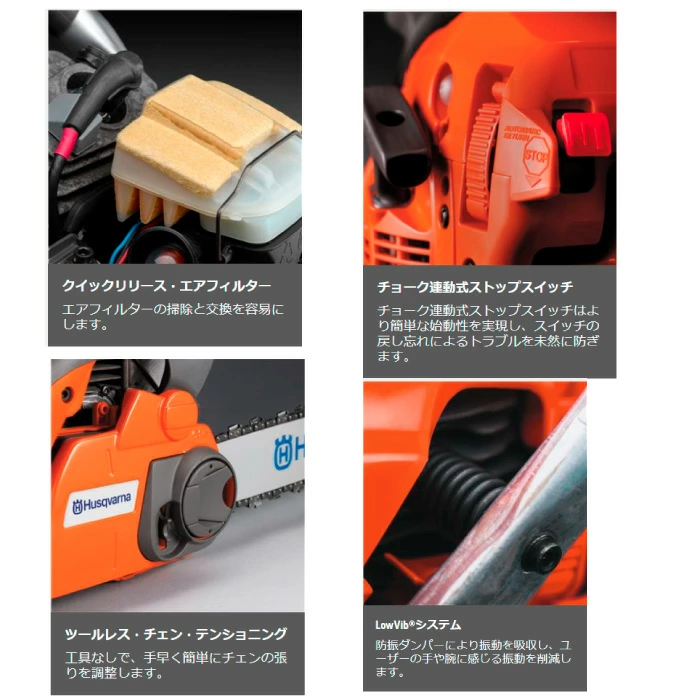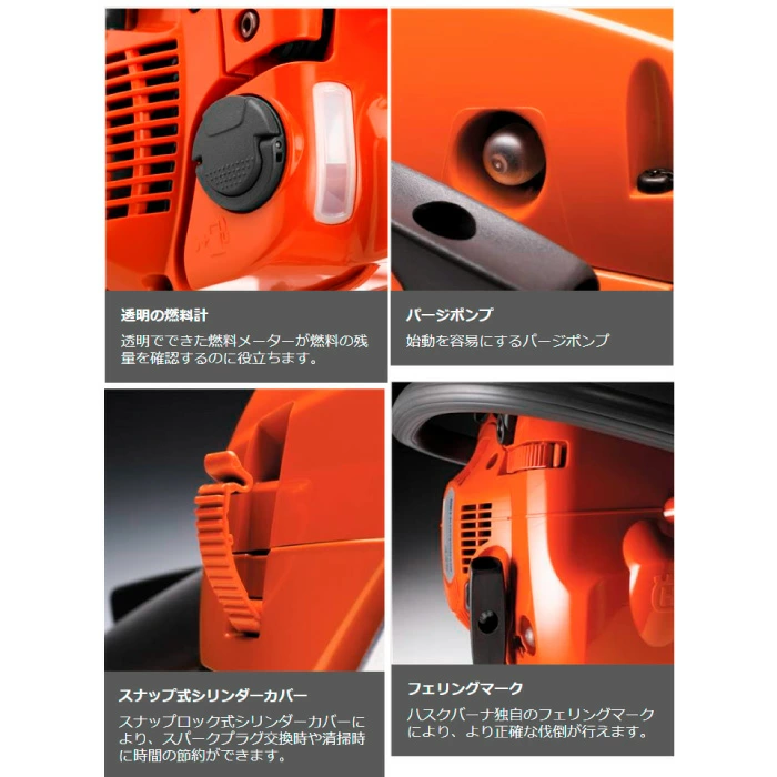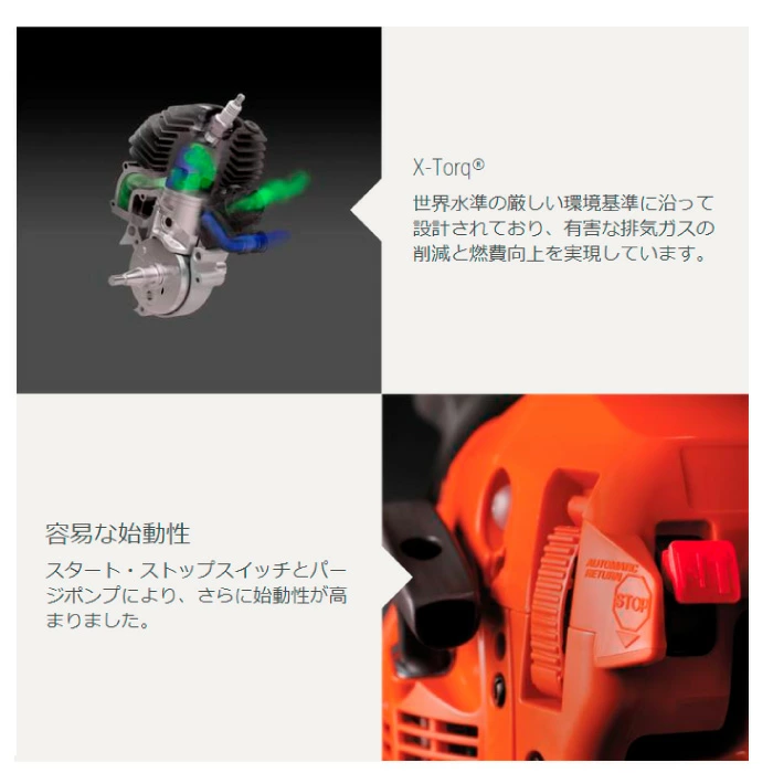 オールラウンドチェンソーは、使用頻度は少なくとも、強度や高い信頼性を求める品質志向のユーザーに最適なモデルです。X-Torq®エンジンは、燃料消費量を削減し、排気量を低減させます。オートリターン ・ストップスイッチ、ツールレステンショニング、燃料の残量を確認できる透明な燃料ラベルなどの機能を搭載し、より扱いやすい設計となっています。また、スマートスタート®やパージポンプにより、さらに始動性を高めました。